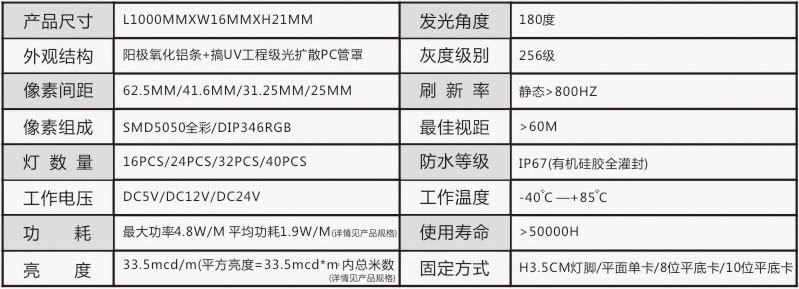 P30灯条屏Product parameters